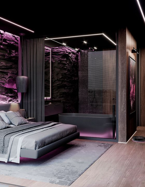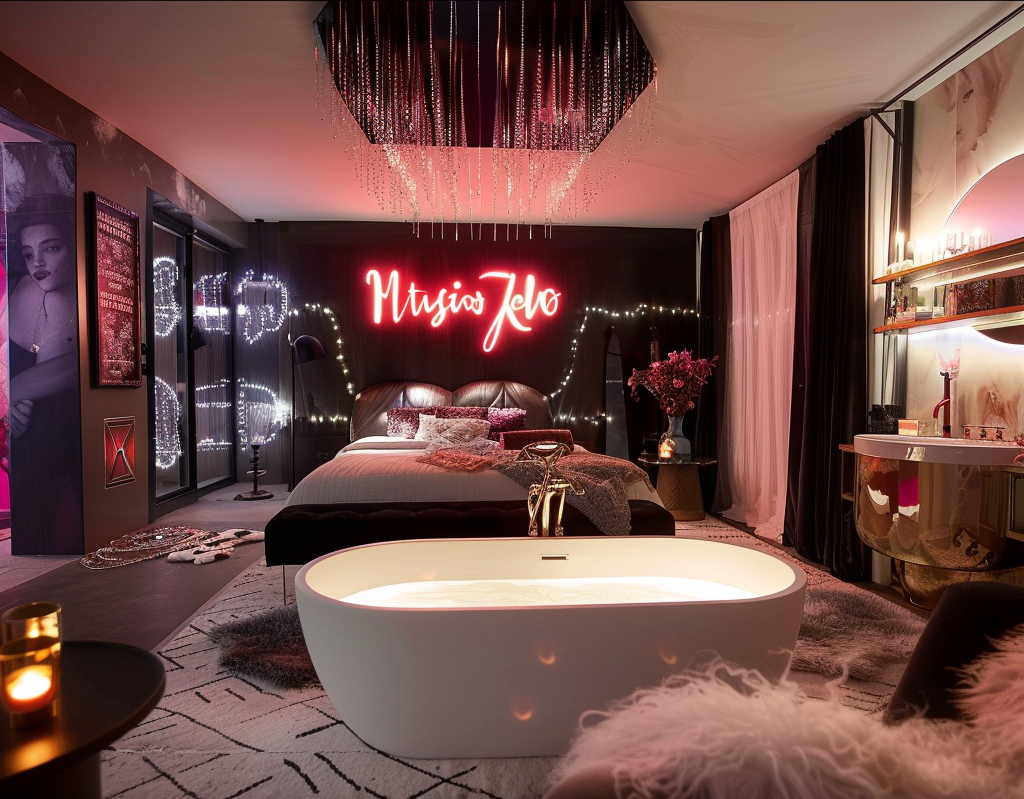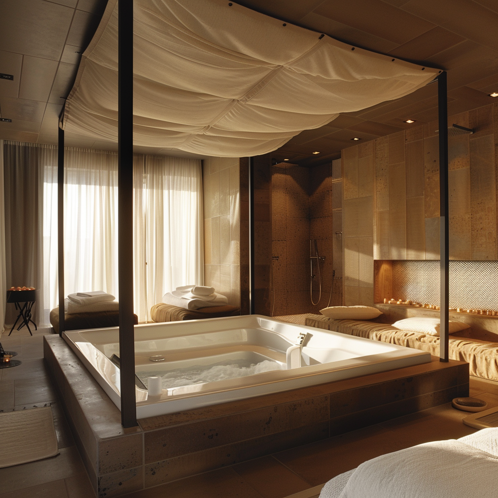 Imagine a sophisticated home lounge wrapped in soft velvet fabrics, a cozy home spa, subdued lighting from strategically placed lamps, interesting mirrors that add mystique and excite the mind. Every detail is designed to offer you a refuge from everyday life and remind you of the importance of intimate moments.