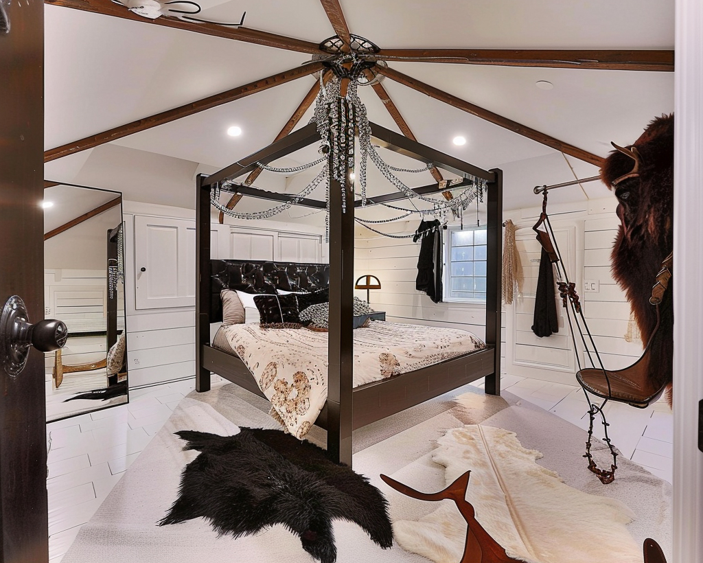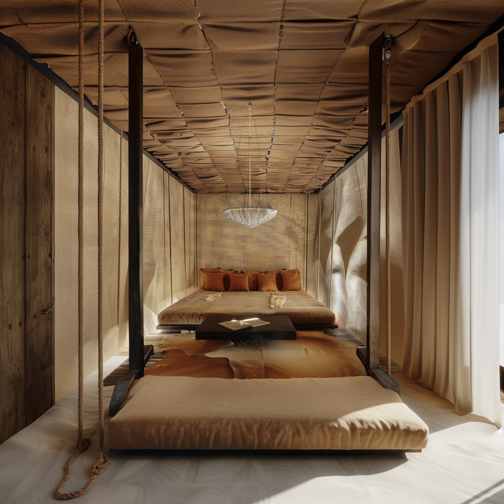 It is important to understand that this can also be your own bedroom - transformed to include discrete systems of doors and entrances, rings and hooks that remain invisible to your children and guests.